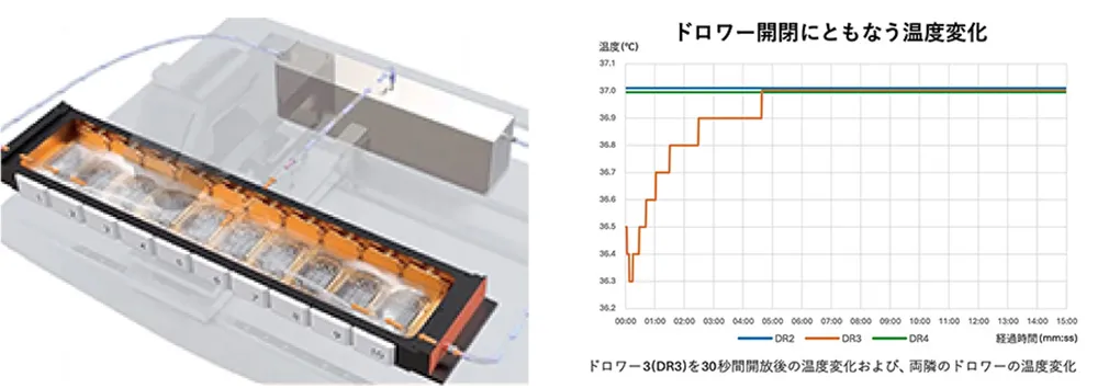 | ドロワー30秒開閉による隣接ドロワーへの影響 | ±0.1℃以内 |